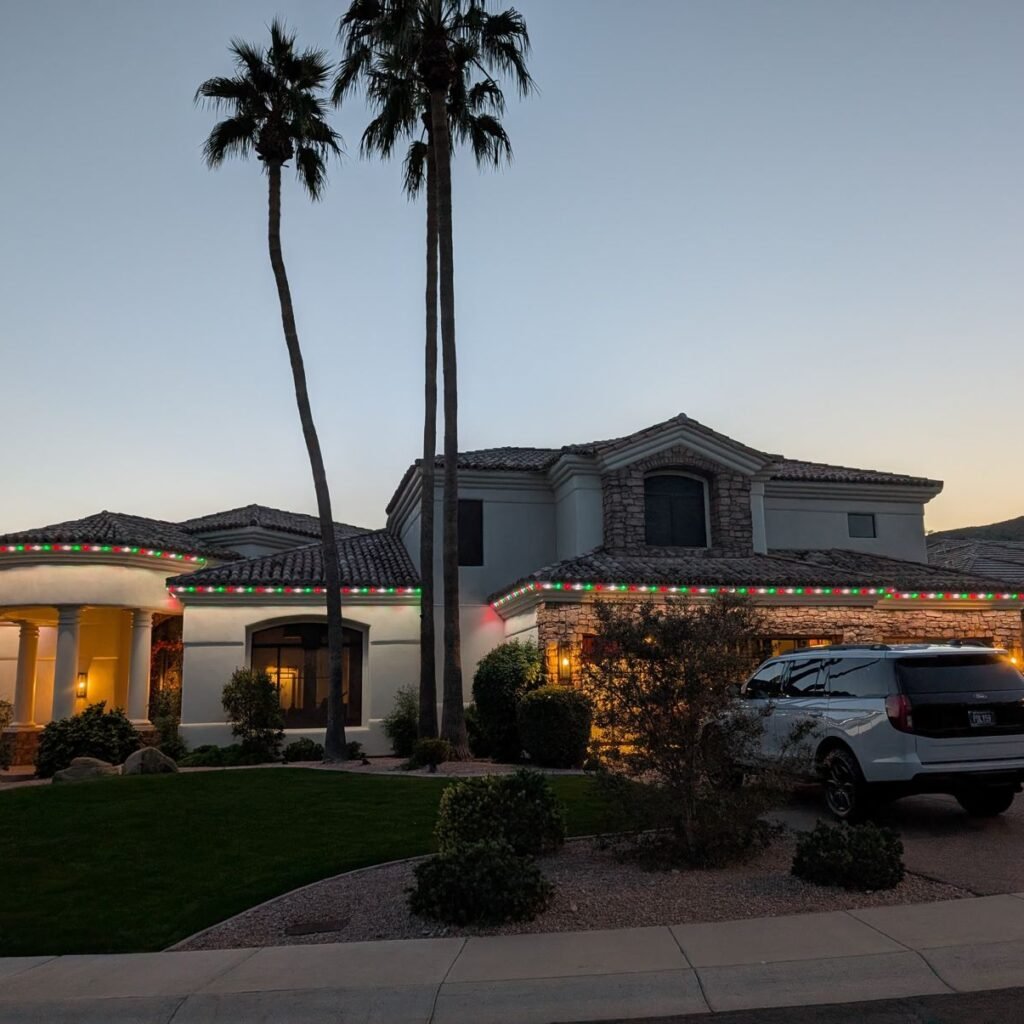 Luxury holiday lighting and permanent lighting systems have become one of the most popular exterior upgrades for homeowners across the Phoenix Valley. A professionally designed lighting display highlights the architectural features of your home, enhances landscaping, and creates an elegant atmosphere that stands out in the neighborhood.